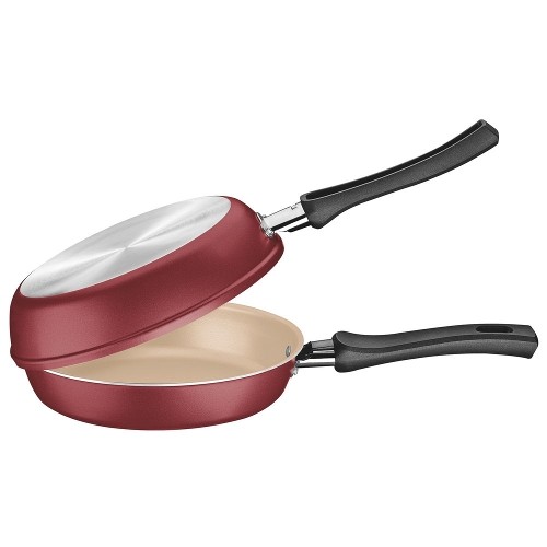 os alimentos não grudam, facilitando à limpeza. É formada por duas frigideiras com sistema de encaixe,